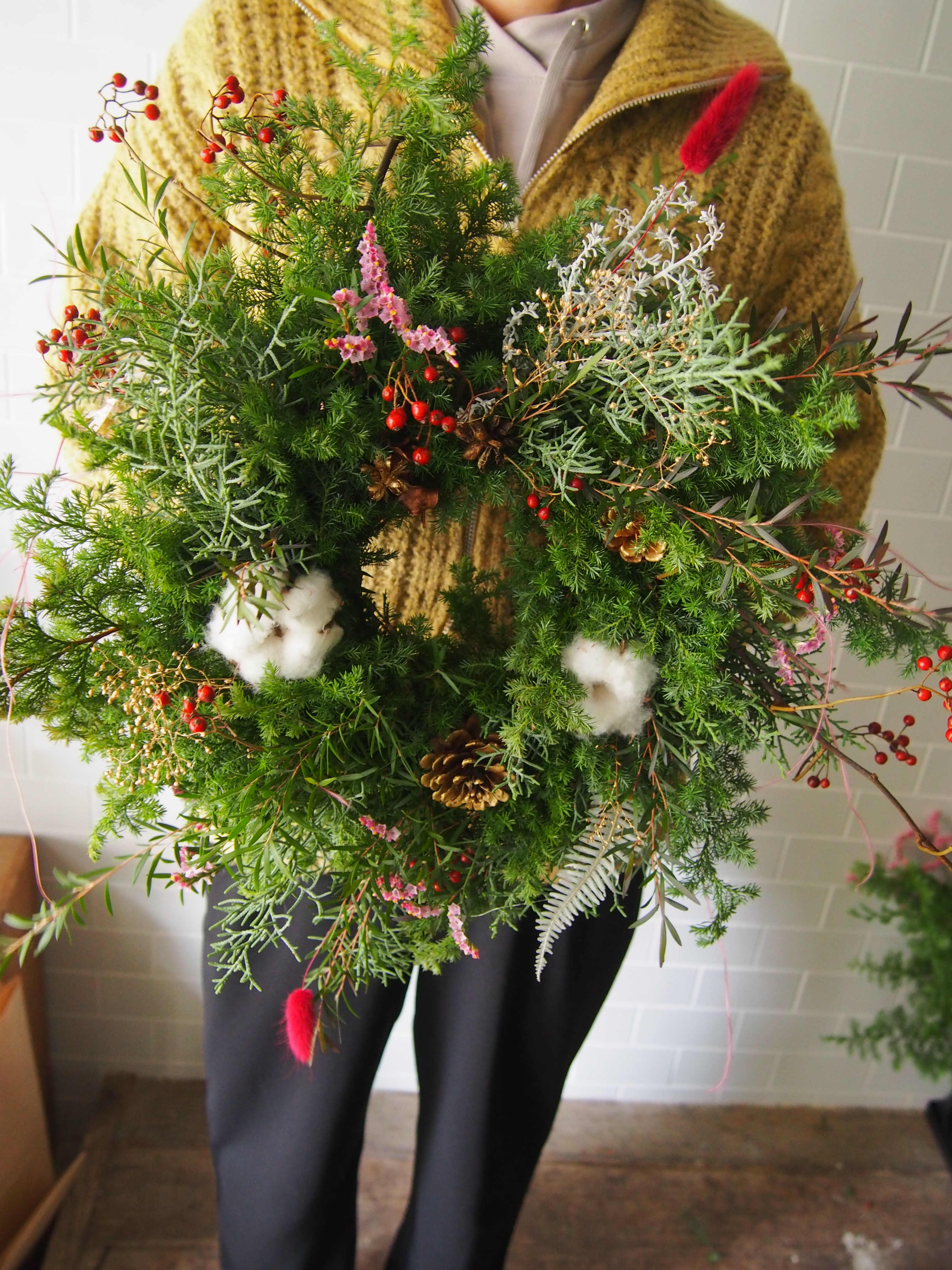 ざっくり自由に作ってもらったのでかわいいリースやスワッグがいろいろできました!良いクリスマスを( ͡° ͜ʖ ͡°)