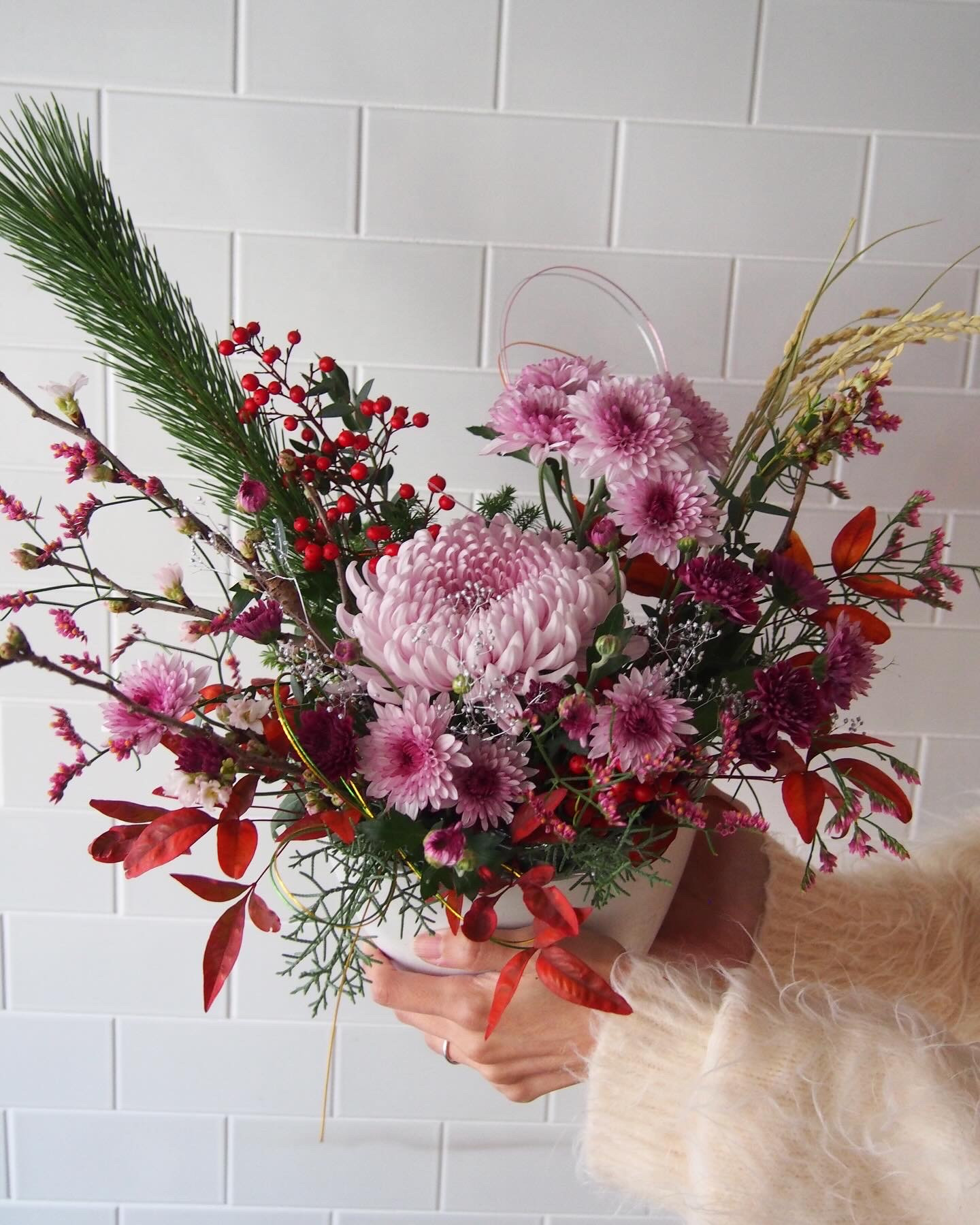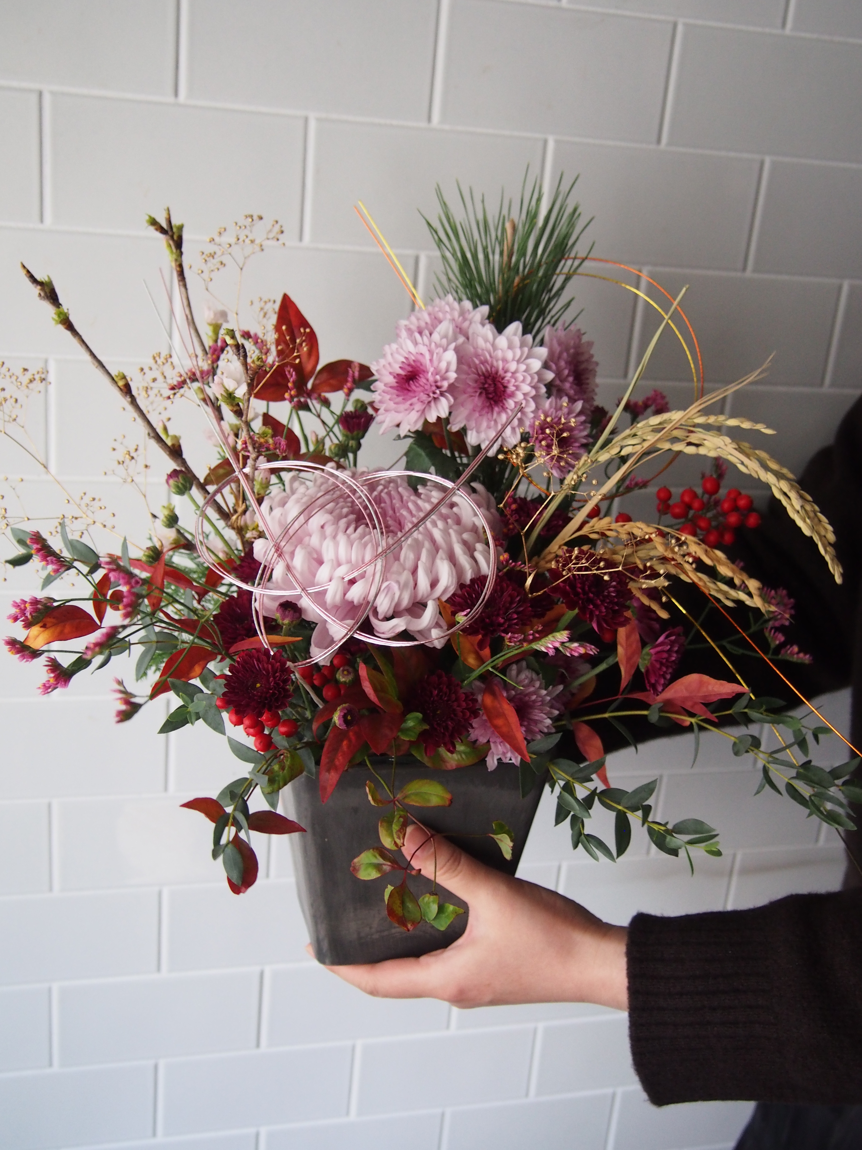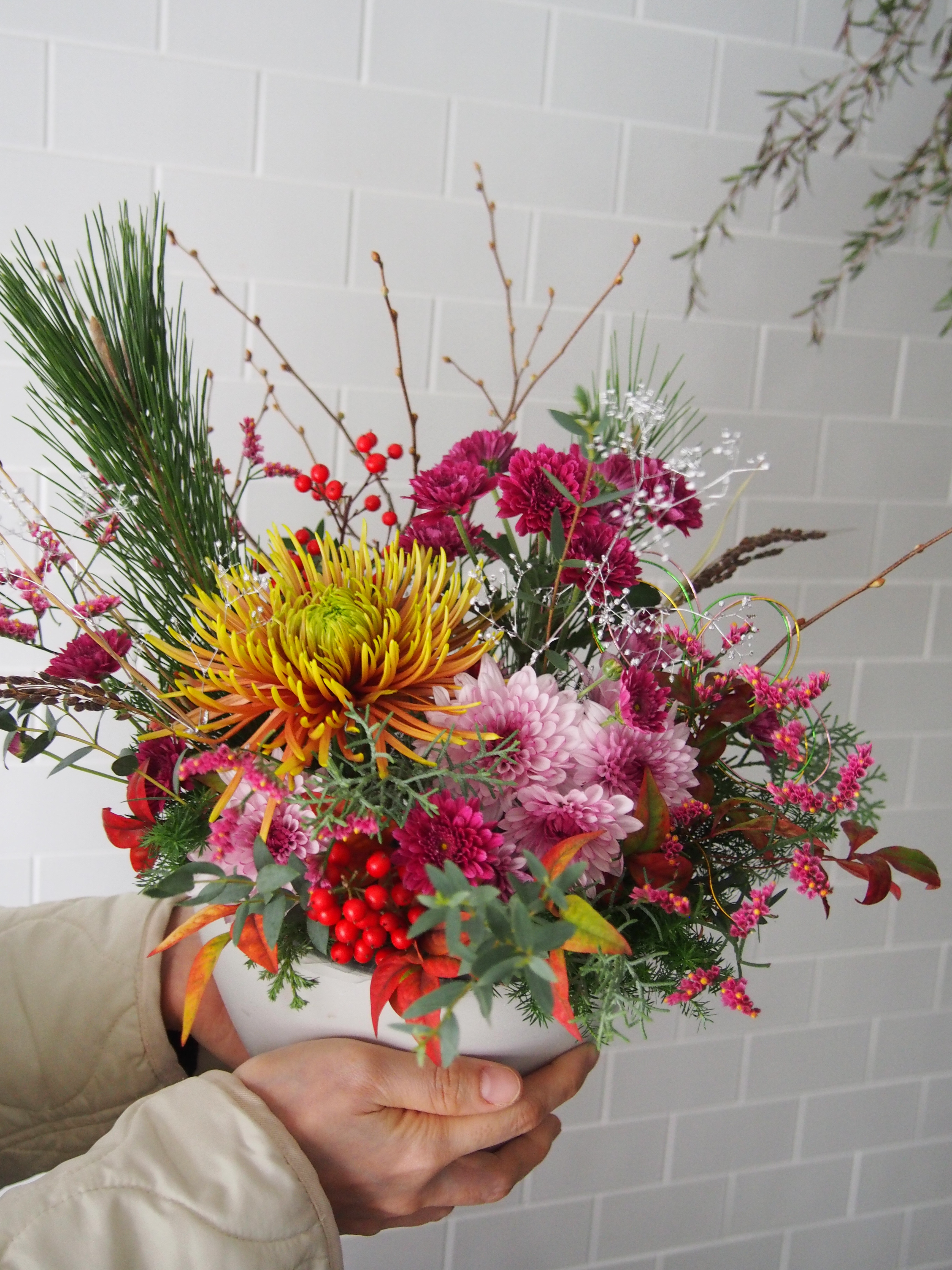 マムや南天、水引きもきらきら