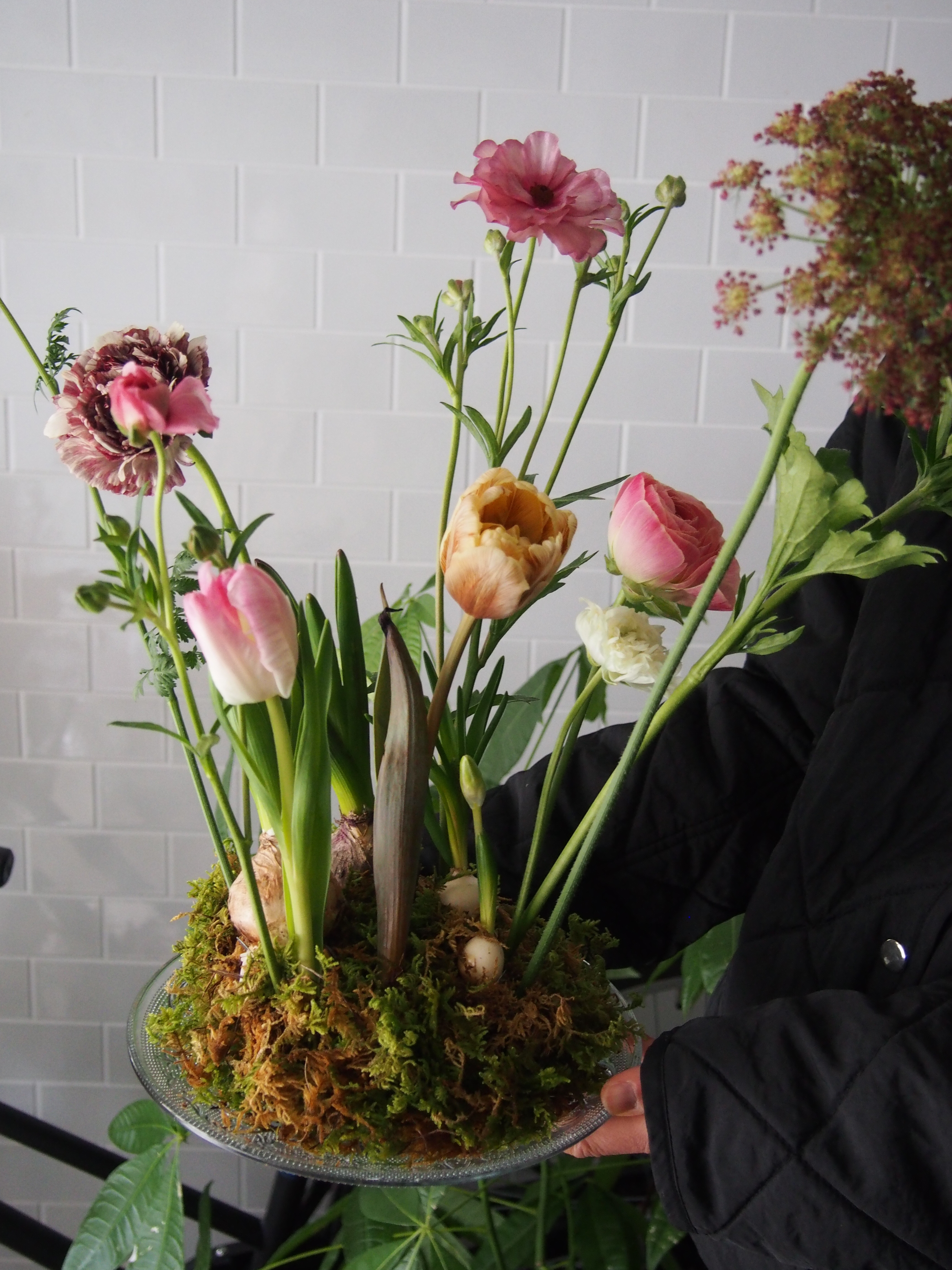 球根がゆっくり咲くのが楽しみなアレンジができました!難しい迷宮入りアレンジ!